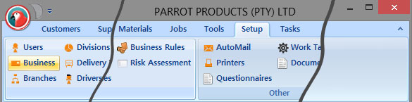 The customer control account is used to link all COD accounts to in order to group all the accounts together. To set up the control account, click on the Setup tab, and then click on Business as highlighted below.