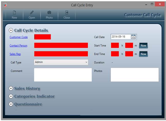 Photos – Optionally photos can be taken and attached to the Call Cycle. (Use Photo Button at the top)