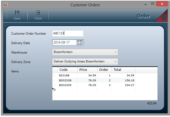 You can then save the Order. It will be uploaded to the server when you do a sync. If there are any issues with the Order during Sync, it can be opened and corrected.