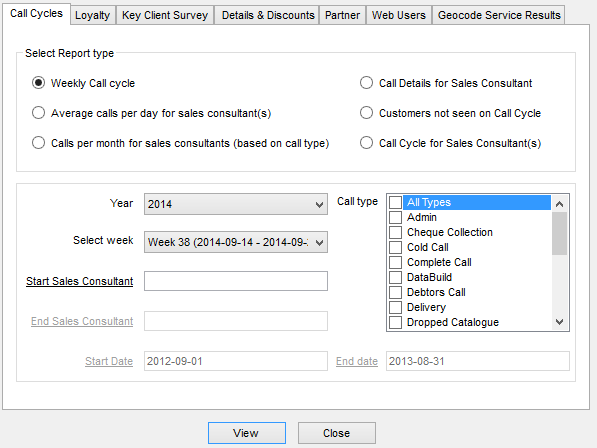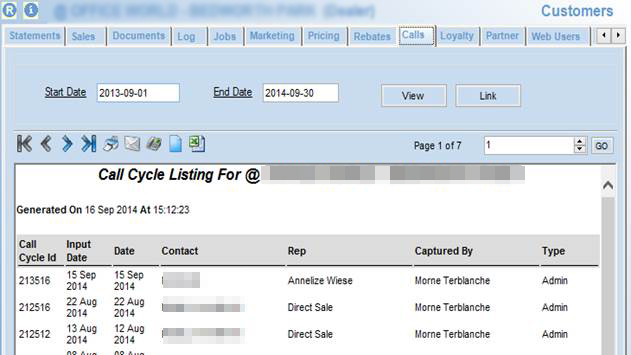 Once a Call Cycle has been saved, buttons are available in online mode to view the Call Cycle in a report (html/web) format as well as view full sales figures for the customer, which can be drilled into.
