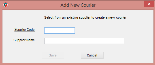 Clicking on the underlined Supplier Code will display a lookup where you can search for the supplier you wish to link to the courier company. Clicking save will then add the new courier company.