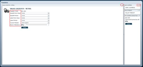 Shown below is the screen you are presented with if you either add a new company or have clicked on the square next to an existing courier company.