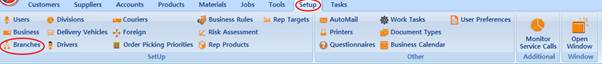 In order for a courier company to be have its fees calculated by Parrot, it must first be linked to a Delivery Zone. Under the Setup tab, click Branches.