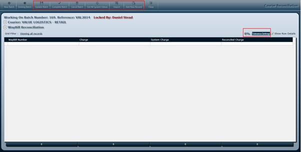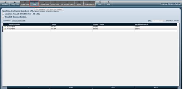 The Courier Recon Batch will then be updated with the imported data. After doing this, click Get All System Values and, as when after manually entering a record, any discrepancies will be flagged.