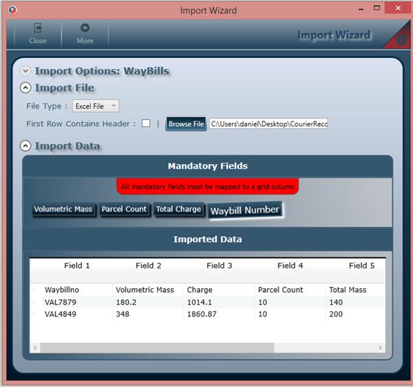 As an alternative to manually inputting the courier values for each waybill number these values can be imported from an existing file.