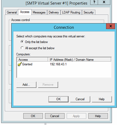 6. On the access tab, click the connection button and then grant access to the local machine’s IP address.