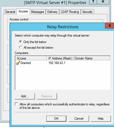 Enter the local IP address of the IIS (SMTP Server). No user name or password will be required in this configuration.