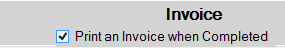 When the “Print an Invoice when Completed” is not selected, no message will appear and you can continue to create a new invoice straight away.