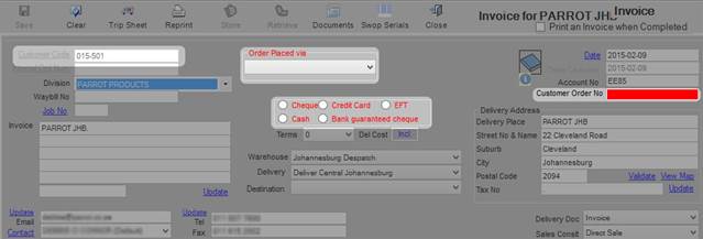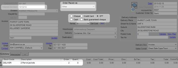 When doing an invoice from a Sales Order, all the information required will already be completed. This information comes from the data entered when the Sales Order was captured.