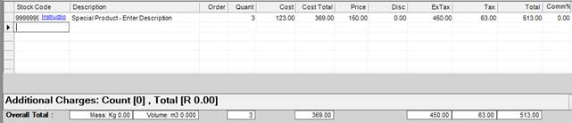 Once all the information has been entered, the products and quantities required on the invoice can be added by either entering the product code in the grid, or searching for the product and selecting it from a list.