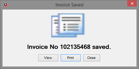 When the “Print an Invoice when Completed” option is selected (or no trip sheet was created), a message will appear when the process has completed prompting to View or Print the invoice, or cancel and go back to the invoice screen in order to capture another invoice.