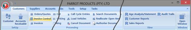 To access the Invoice Control screen, click on the Invoice Control button in the Customers tab.