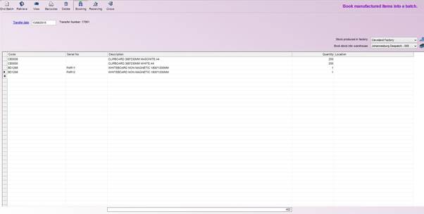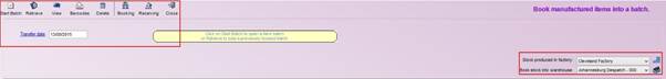 - Start Batch:This lets you create a new booking batch of manufactured items.