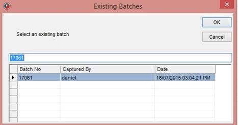 - Delete: This lets you select and delete an existing batch from the system. (The popup is identical to Existing Batches.)