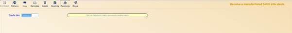 You will notice that when receiving a batch, you cannot start at new batches, only retrieve previously booked batches. The rest of the functions on the toolbar remain the same (View, Print Barcodes, Delete and Close.)