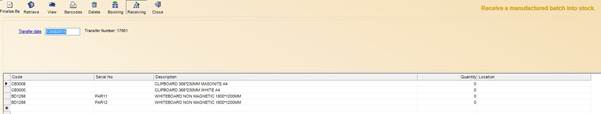 - Stock Code: Only shows transfers for the specific Stock Code entered here. Double click on the text to popup the Finished Goods Lookup.