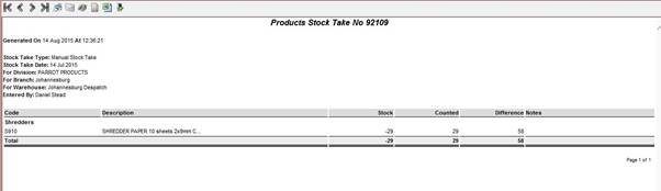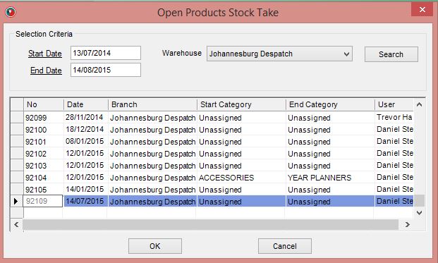 - Warehouse: The warehouse you wish to search for previous stock take records on.
