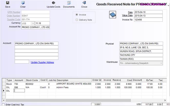 Physical – Displays Supplier Account Details Lines are similar to Purchase Orders just enter Invoice and received quantities.