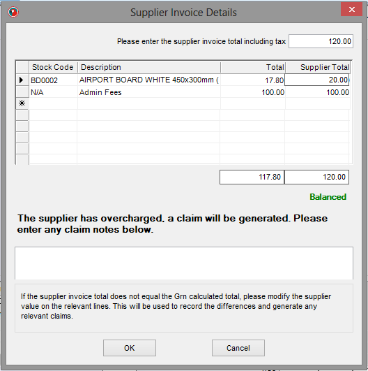 Once GRN is saved, you must enter the invoice total. Comparisons are done with original Purchase Order and if total is more, a claim will be generated automatically. GRN can also be viewed at this stage.