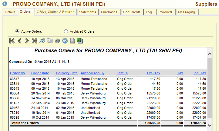 PO Outstanding - Lists Outstanding Purchase Orders by Supplier.