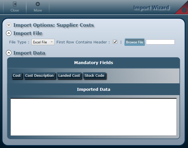 It enables the user to Import Supplier Stock Costs. It can be found on Suppliers Tab – Import Supplier Stock Costs.