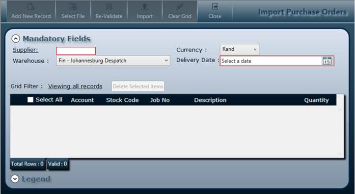 Import - Click Import button to use import data to create Purchase Orders.