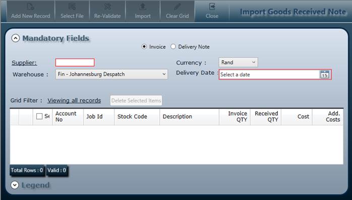 1.3 Import GRN (Goods Received Note)