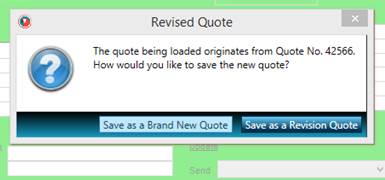 Once the “Ok” button is clicked, a screen will be shown which prompts the user to decide whether the new quotation will be a brand new quotation or a revision of the quote. The user will only be prompt to make this choice only if the no Customer Code is loaded (no Customer Details are available on the screen) or the quotation copied was saved for the same Customer Code that is already loaded on the screen.