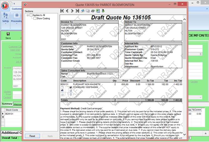 The quotation which is not authorised will be shown as a Daft Quote until it is authorised.