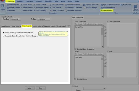 - Active Quotes by Sales Consultant and User