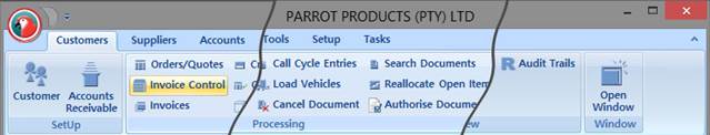The crating and sorting / optimizing of a delivery route is available from the Invoice Control screen as shown below.